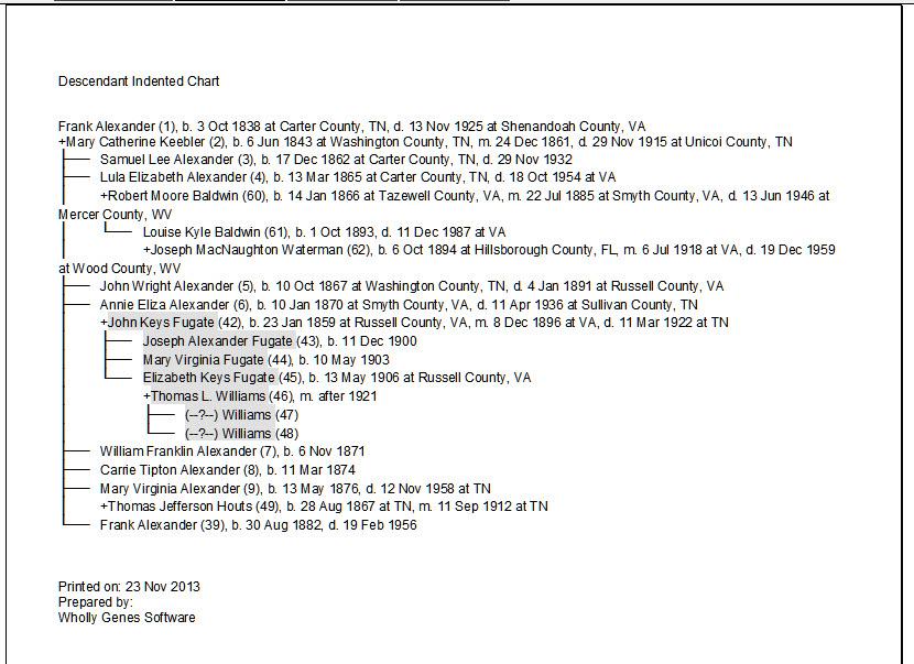 Virginia Blakelock 0 Report post Posted November 23, 2013 John - One way - Create a Flag for the people in a dubious line. Use the Focus Group to corral the people in the dubious line. Save the Focus Group. Use the Secondary Output of the List of People report (Focus Group) to set the flag for those people. Create a screen accent based on that flag setting. In the report options select Fonts and Colors > Honor screen Accent color definitions. Attached is an example of the Descendant Indented Chart showing a dubious line. Virginia Share this post Link to post Share on other sites